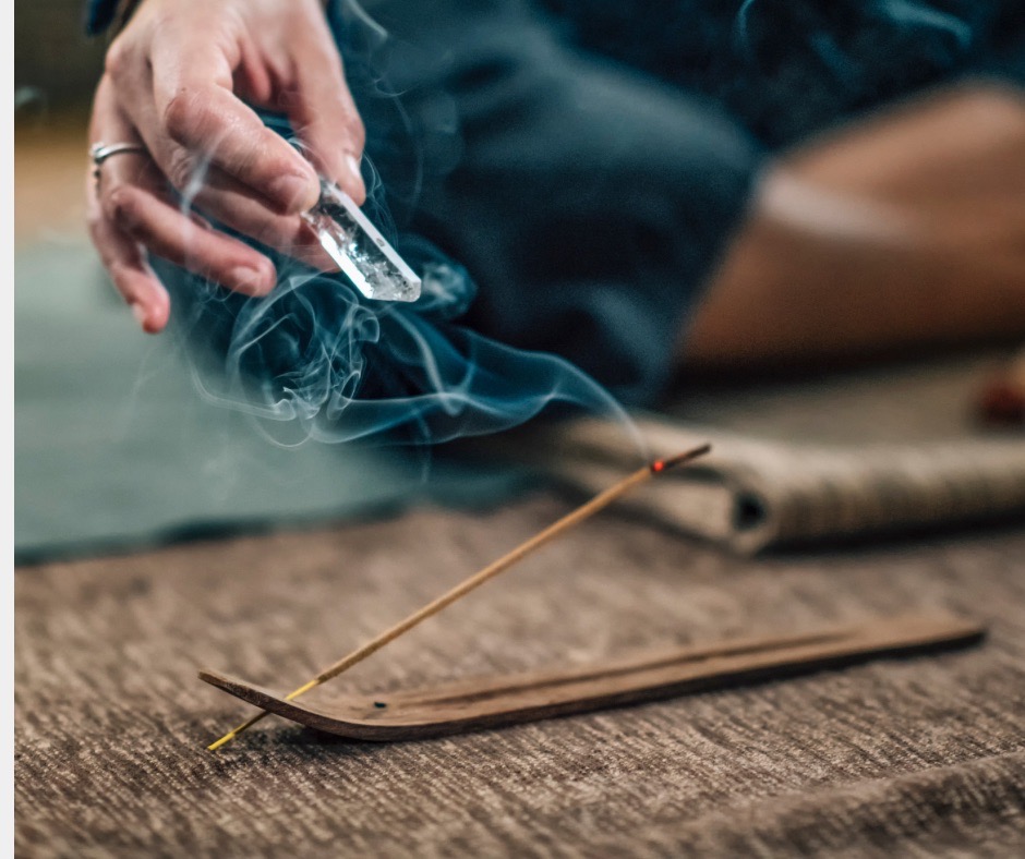 เผาเครื่องหอม ธูป ใบท์เสจและปล่อยให้ควันล้อมรอบคริสตัลของคุณ