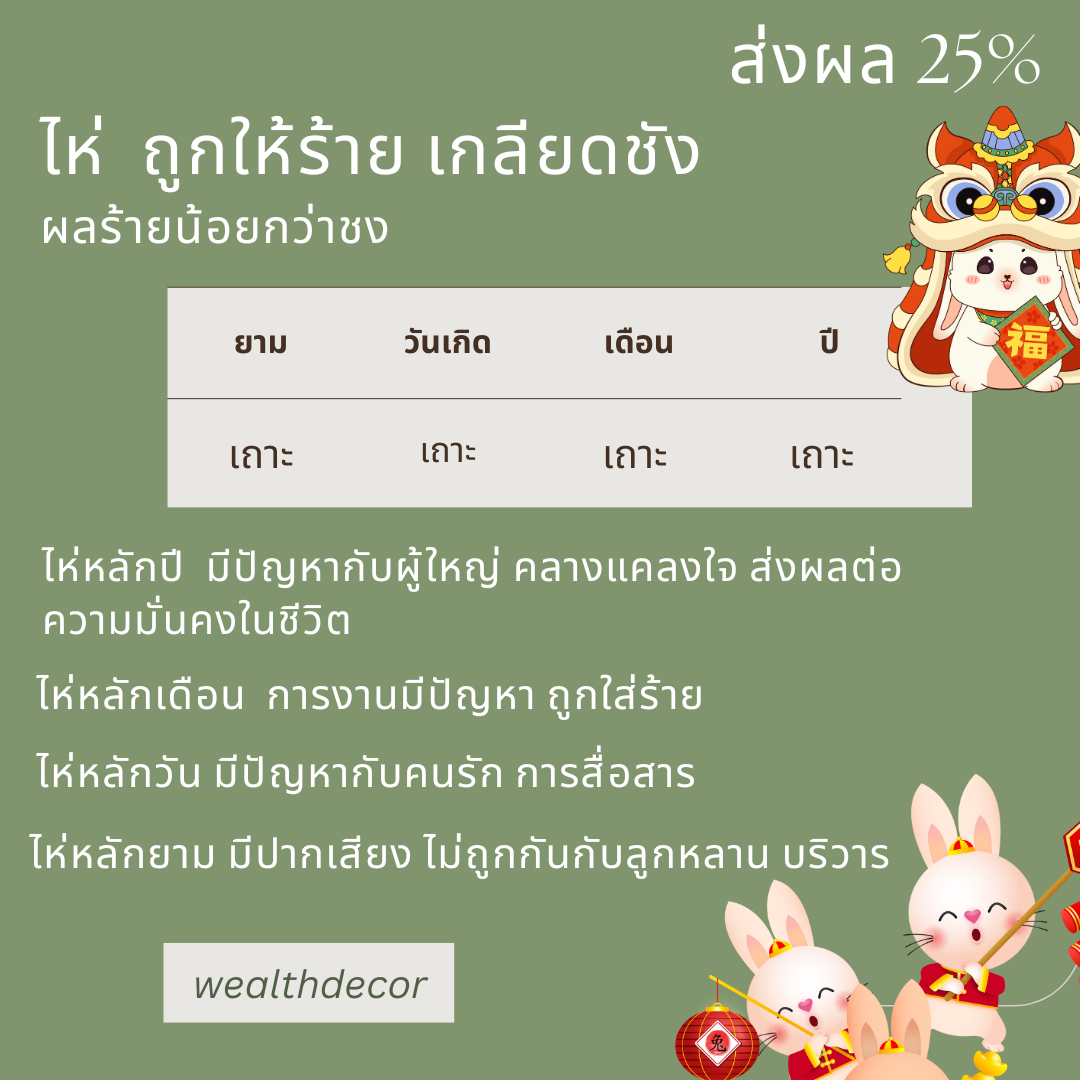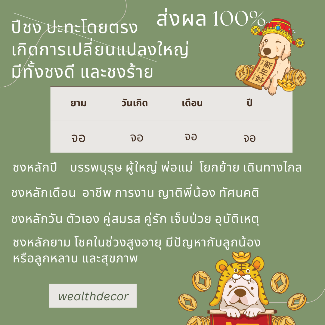 จะช่วยผ่อนหนักเป็นเบา เนื่องจากปีนี้ปีที่ถูก ชง โดนตรง คือ ปีจอ จึงให้พกปีระกา ซึ่ง ฮะ ( ภาคี) กับ ปีมะโรง
