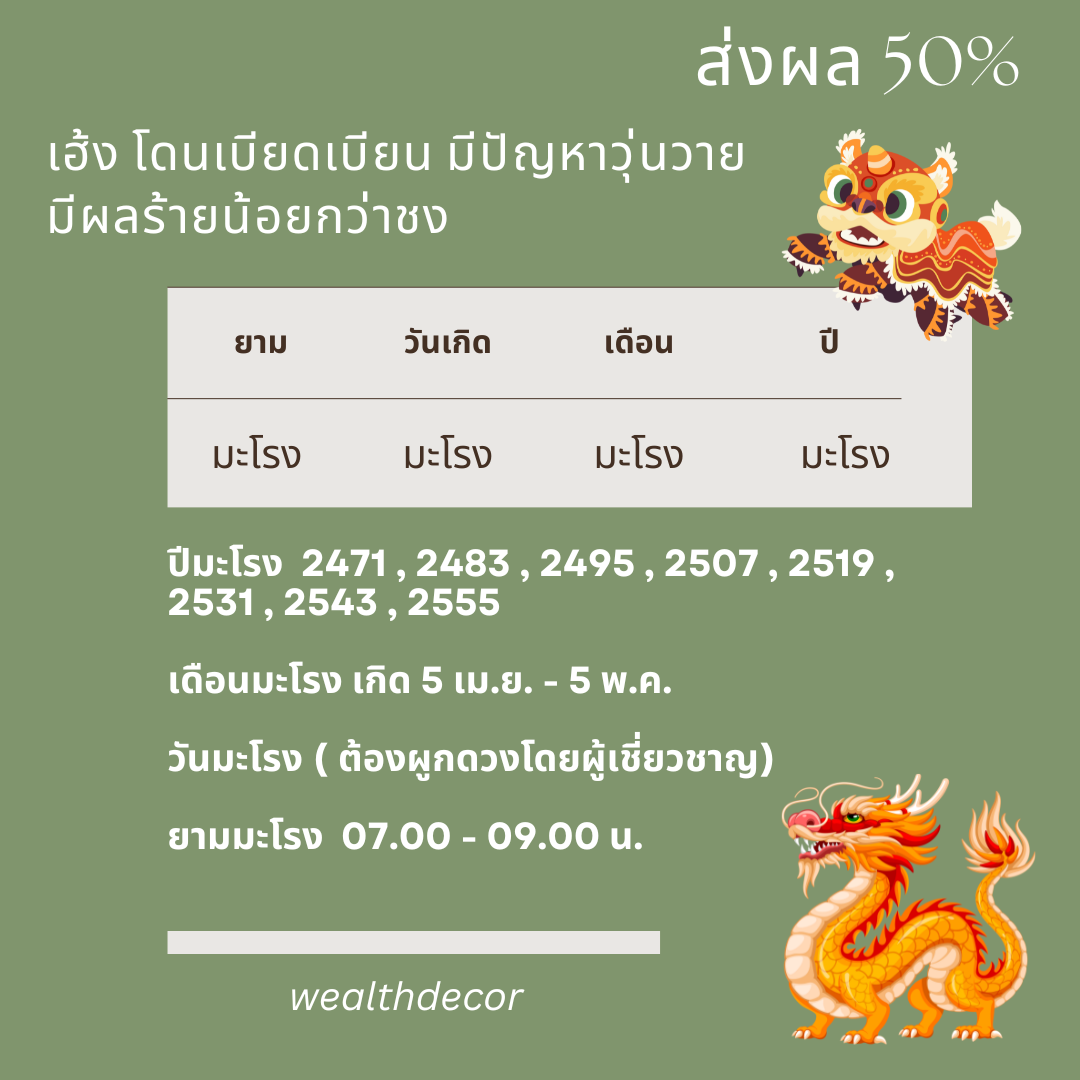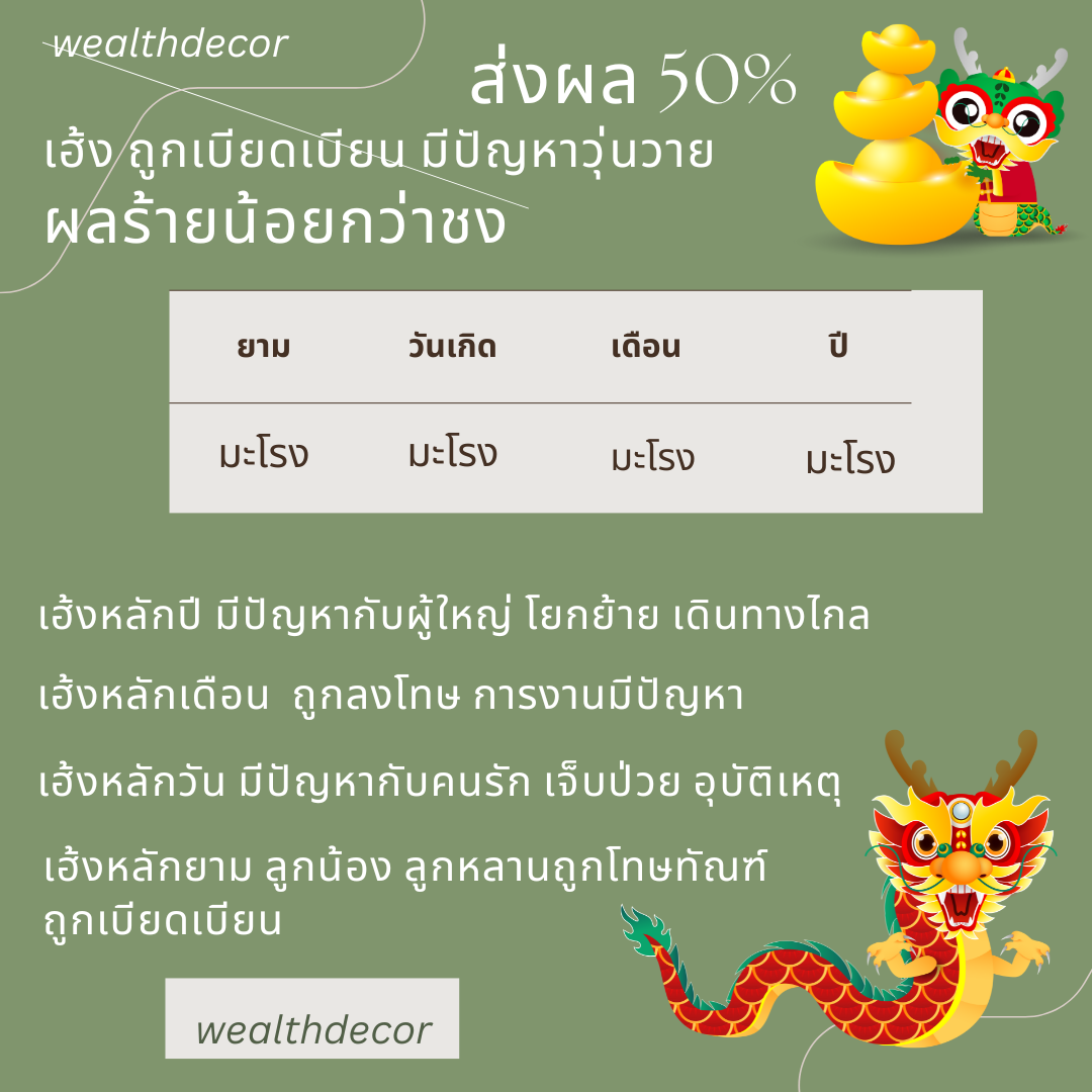 เฮ้ง ถูกเบียดเบียน มีปัญหาวุ่นวาย ผลร้ายน้อยกว่าชง ( มีผลกระทบ 50 % )