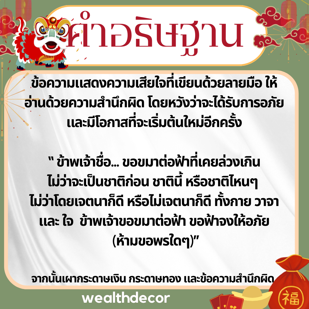 จากนั้นเผากระดาษเงิน กระดาษทอง ข้อความสำนึกผิด