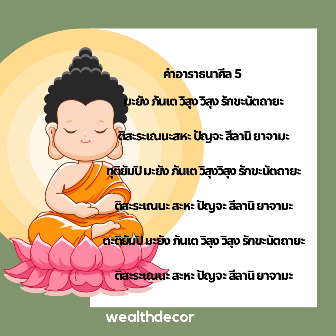 การรักษาศีล 5 อย่างเคร่งครัด ให้รักษาศีลห้าอย่างเคร่งครัดมากขึ้น ศีลเหล่านี้เป็นแนวทางพื้นฐานทางจริยธรรมในพระพุทธศาสนา ได้แก่ การไม่ทำร้ายสัตว์ การลักขโมย การประพฤติผิดในกาม การโกหก และการมึนเมา