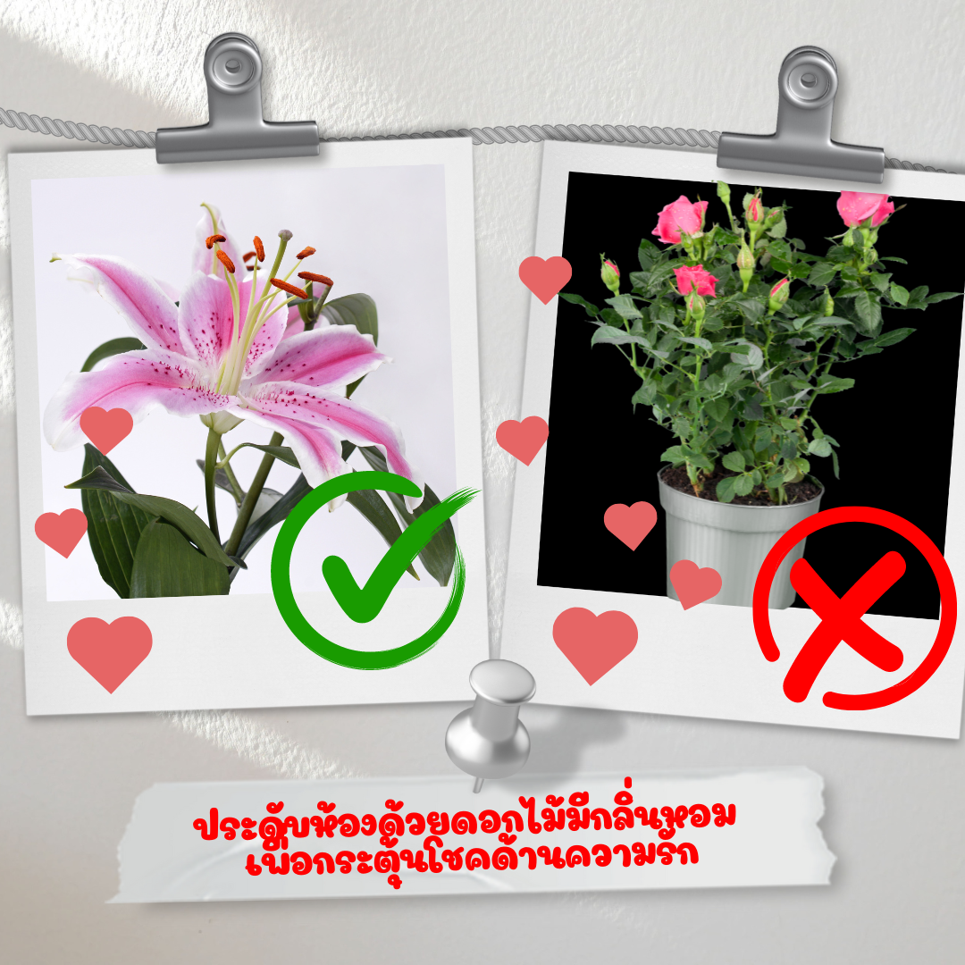 กระตุ้นความรักด้วย แจกันดอกไม้สด เพื่อเสริมสร้างบรรยากาสหวานชื่น หลีกเลี่ยงดอกกุหลาบ จึงอาจนำมาซึ่งการทะเลาะแว้ง ในเรื่องไม่เป็นเรื่อง ดอกไม้ที่เหมาะสมควรมีกลิ่นหอม เช่นดอกลิลี่ ดอกราตรี