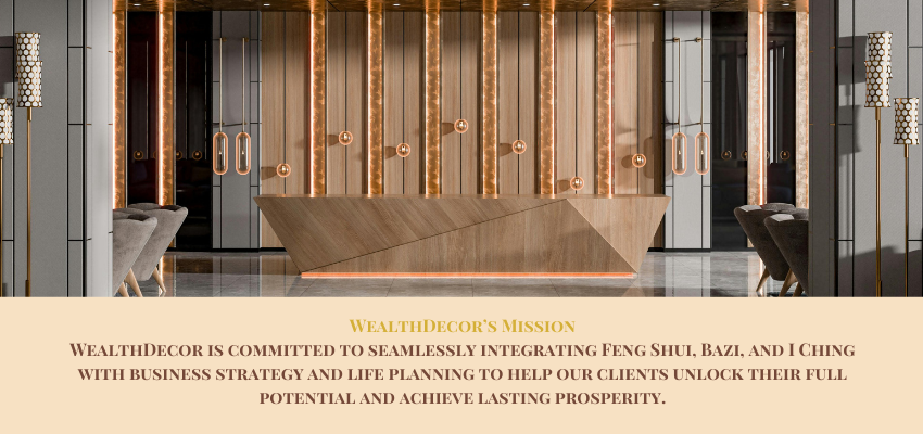 ที่ Wealth Decor เราให้บริการ ฮวงจุ้ย & กลยุทธ์เชิงพลังงาน ในรูปแบบที่แตกต่างจากการดูดวงหรือปรับฮวงจุ้ยทั่วไป ภารกิจของเราคือการผสมผสาน ศาสตร์ฮวงจุ้ยคลาสสิก ดวงจีน (Bazi) และอี้จิง (I Ching - คัมภีร์แห่งการเปลี่ยนแปลง) เข้ากับกลยุทธ์ทางธุรกิจและการพัฒนาตนเอง เพื่อช่วยให้คุณ สร้างความมั่งคั่ง ความสำเร็จ และความสมดุลในทุกด้านของชีวิต