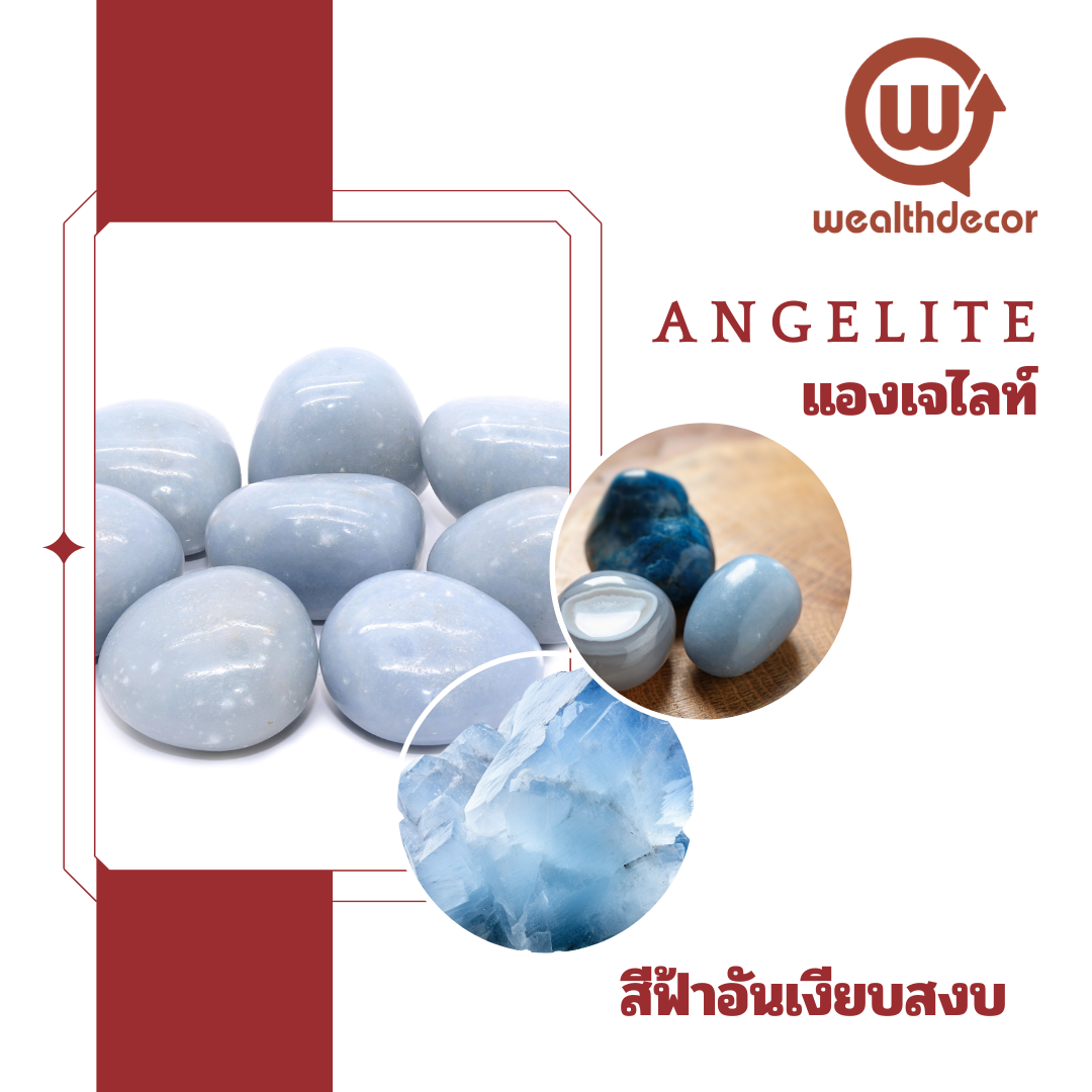 Angelite สีฟ้าอ่อนๆ เมื่อแองเจไลท์สัมผัสกับน้ำจะสามารถเปลี่ยนกลับเป็นยิปซั่ม ทำให้รูปลักษณ์ เนื้อสัมผัส และโครงสร้างเปลี่ยนแปลงไป