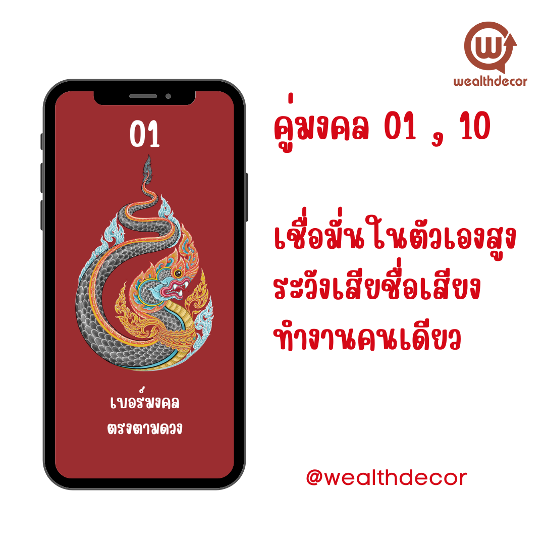 คู่เลขมงคล 01,10 มั่นใจในตัวเองสูง ใจร้อนมาก ไม่พึ่งใครหรือพึ่งพาใครไม่ค่อยได้ โลกส่วนตัวสูง ต้องทำอะไรเองจึงจะสำเร็จ ไม่ควรหุ้นกับใคร กล้าได้กล้าเสีย มีอุปสรรค เจอคู่แข่ง ทำอะไรเด่นเกินมีคนอิจฉา บริวารมักให้โทษ