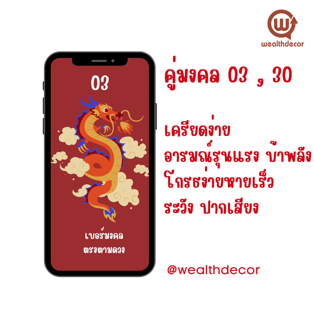 คู่เลขมงคล 03,30 บ้าพลัง ใจร้อน ชอบความเร็ว ขี้โมโหสุดๆ เจ้าอารมณ์ เครียด อารมณ์รุนแรงมาก ควบคุมอารมณ์ไม่ได้ ทำให้เกิดการทะเลาะเบาะแว้ง แต่โกรธง่ายหายเร็ว เป็นคนแข็งกระด้าง หยาบคาย ไม่น่ารัก
