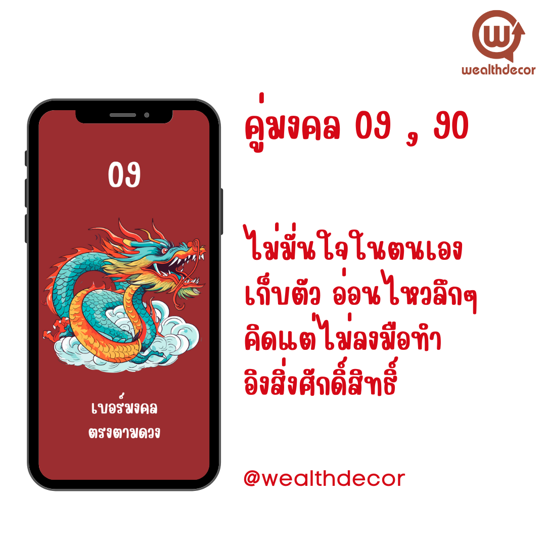 เลขคู่มงคล 09,90 ไม่มั่นใจในตัวเอง ไม่ชอบเข้าสังคม มุ่งเข้าหาแต่สิ่งศักดิ์สิทธิ์ เหนือธรรมชาติมากเกินไป ไม่ได้รับโอกาส ผู้ใหญ่ไม่สนับสนุน ชอบคิดแต่ไม่ลงมือทำ