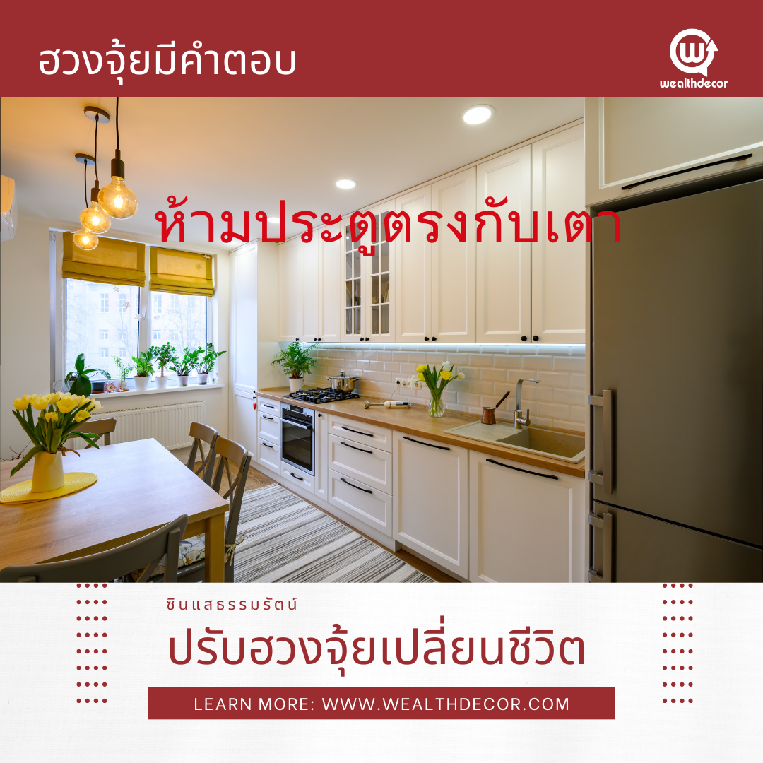 ถ้ามีการประตูตรงเตา อาจเกิดอันตรายแก่คนเปิดประตูและคนใช้เตาได้ ในทางฮวงจุ้ย