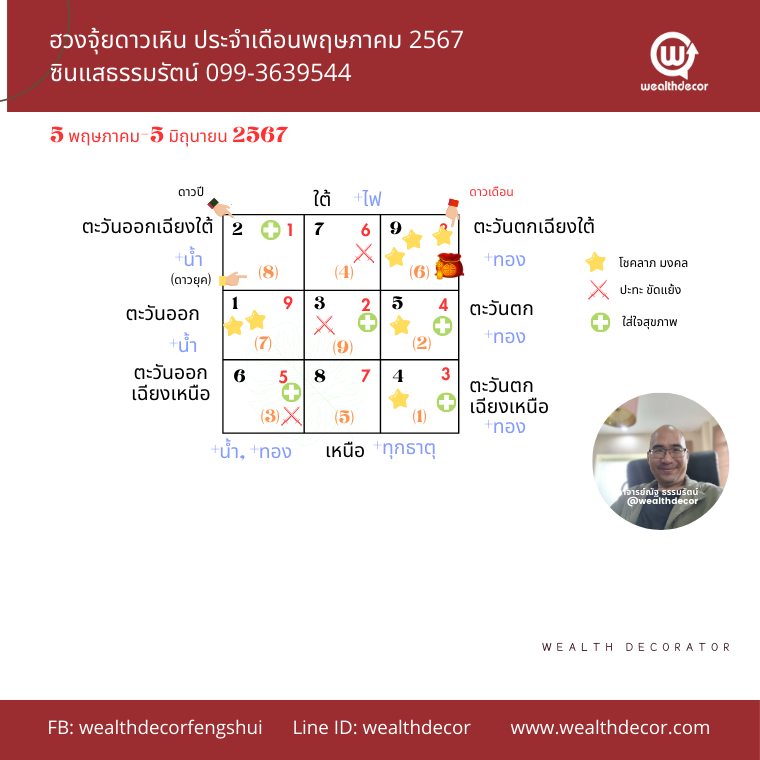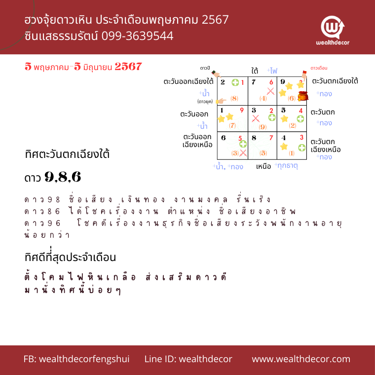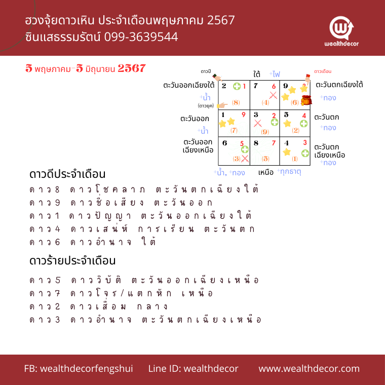 ฮวงจุ้ยดาวเหิน ประจำเดือนพฤษภาคม 2567