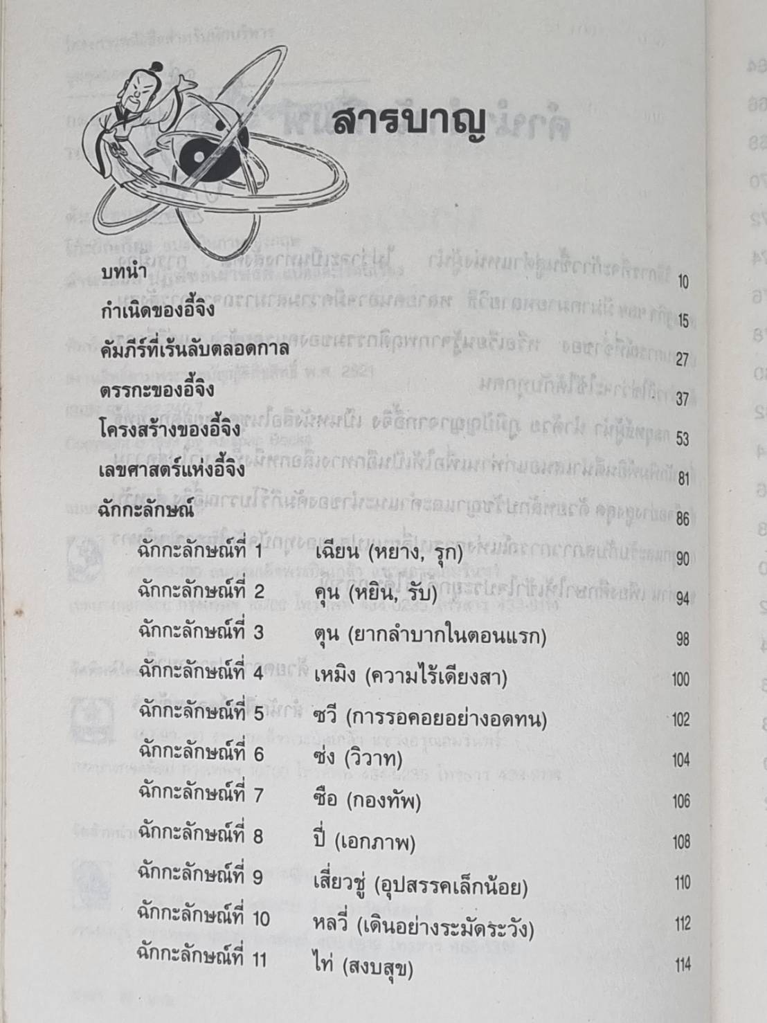หนังสือแบ่งเป็นส่วนย่อย ๆ ที่ครอบคลุมทั้งปรัชญาและการนำไปปฏิบัติในชีวิตประจำวัน เนื้อหาจะนำเสนอถึงแนวคิด "หยินและหยาง" ความสมดุลในธรรมชาติ และวิธีการใช้ "64 ข่วย" (หรือ 64 เฮกซะแกรม) เพื่อการทำนาย การคาดการณ์ และการตัดสินใจในชีวิตของเรา