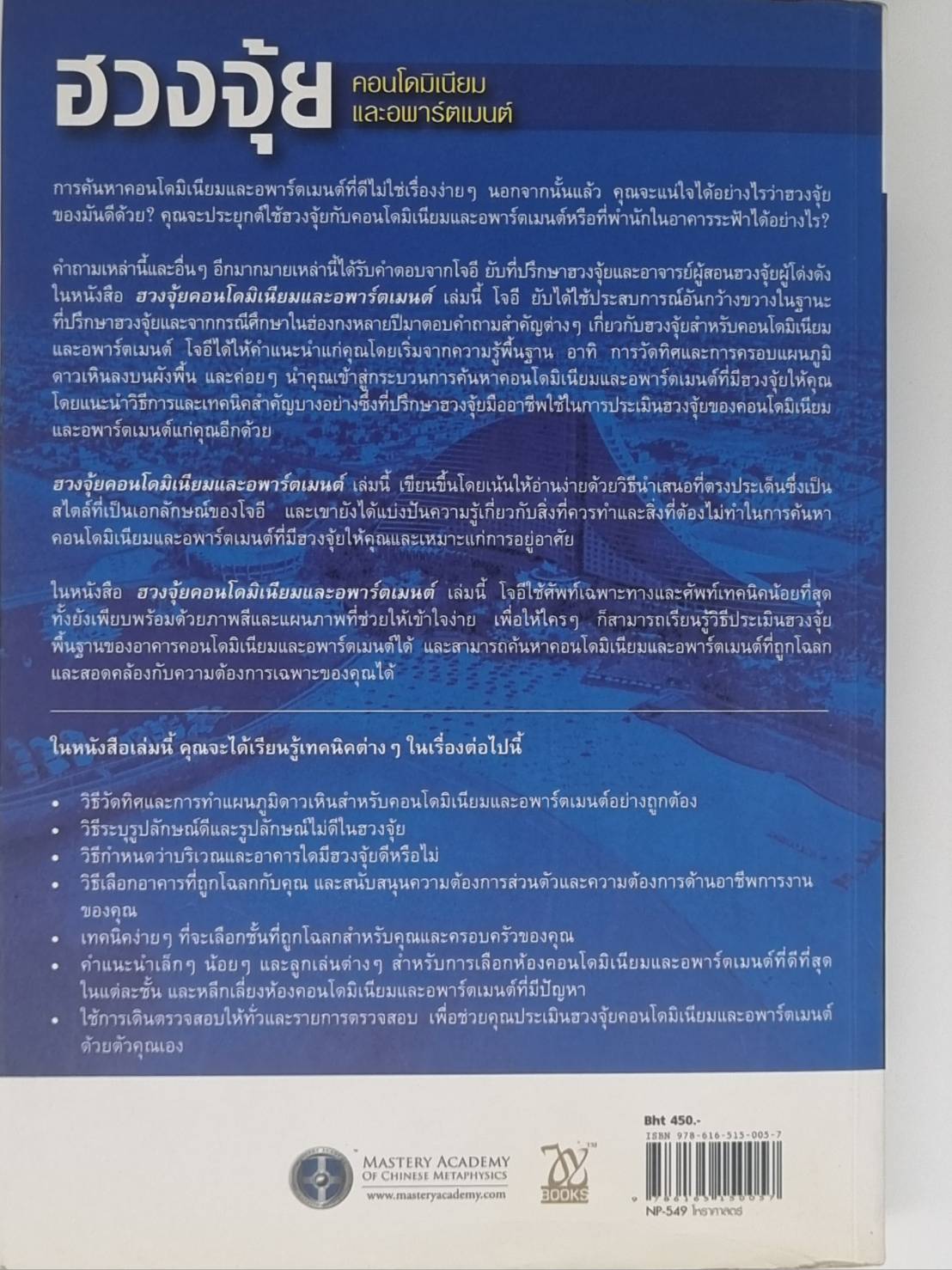 หนังสือ "ฮวงจุ้ยคอนโดมิเนียมและอพาร์ตเมนต์" โดย Joey Yap เป็นคู่มือที่สมบูรณ์แบบสำหรับผู้ที่ต้องการนำศาสตร์ฮวงจุ้ยมาใช้ในการเลือกและจัดวางห้องชุดในคอนโดมิเนียมหรืออพาร์ตเมนต์ หนังสือเล่มนี้ไม่เพียงแค่ให้คำแนะนำเชิงลึกในการจัดการพลังงานในอาคารสูง แต่ยังช่วยให้คุณสร้างบรรยากาศที่เต็มไปด้วยพลังงานบวก เสริมโชคลาภ ความสำเร็จ และความสุขในชีวิตประจำวัน ด้วยความรู้จากผู้เชี่ยวชาญระดับโลกอย่าง Joey Yap หนังสือเล่มนี้เหมาะสำหรับทั้งผู้ที่สนใจเริ่มต้นเรียนรู้ฮวงจุ้ยและผู้ที่มีประสบการณ์แล้ว มันจะช่วยให้คุณตัดสินใจเลือกที่อยู่อาศัยได้อย่างมั่นใจ พร้อมทั้งปรับชีวิตให้สมดุลและเจริญรุ่งเรืองในทุกด้าน