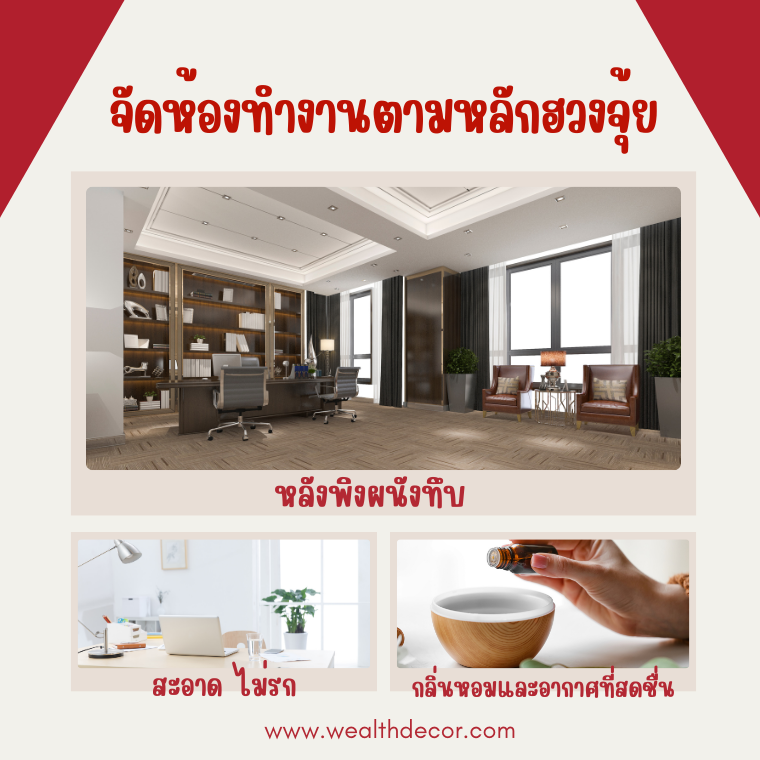 การใช้กลิ่นหอมจากธรรมชาติและการระบายอากาศให้สดชื่นในห้องทำงานเป็นวิธีที่ง่ายและมีประสิทธิภาพในการเสริมสร้างพลังงานที่ดี เพิ่มความสบายใจ และช่วยให้คุณทำงานได้อย่างมีประสิทธิภาพมากขึ้นตามหลักฮวงจุ้ย