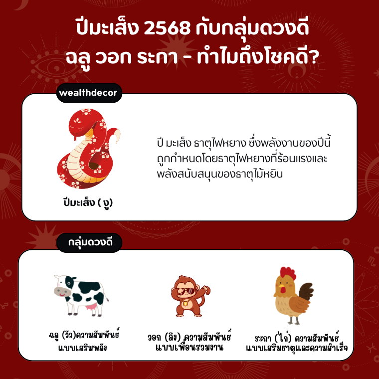 ปีมะเส็ง 2568 กับกลุ่มดวงดี: ฉลู วอก ระกา - ทำไมถึงโชคดี?