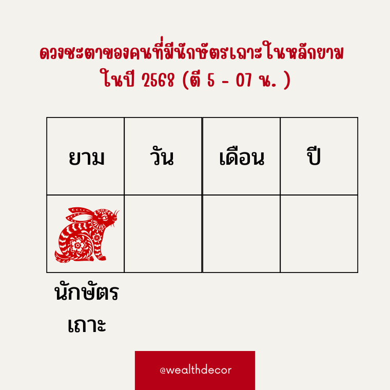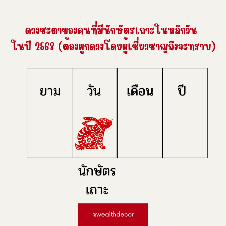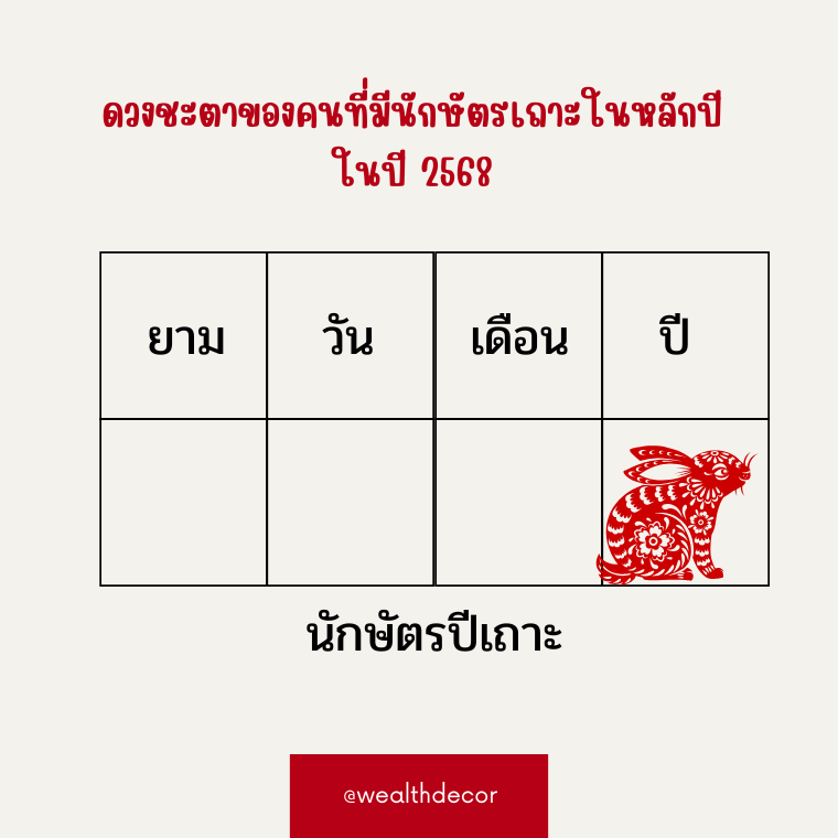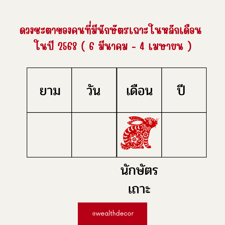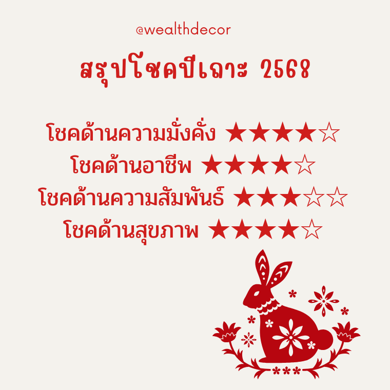ปี 2568 (2025)สำหรับคนที่เกิดในเดือนเถาะ (เริ่มตั้งแต่ 6 มีนาคม - 4 เมษายน )
