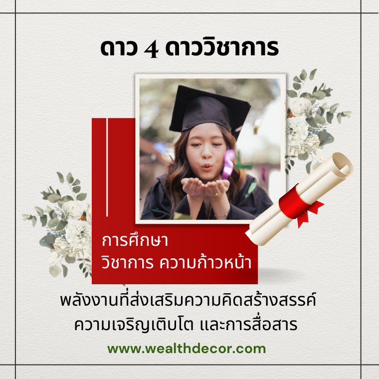 สำหรับผู้ที่อยู่ในช่วงวัยเรียน การได้รับพลังงานจากดาว 4 จะช่วยกระตุ้นให้เกิดสมาธิ ความตั้งใจ และความขยันหมั่นเพียรอย่างเป็นธรรมชาติ ความปรารถนาที่จะเรียนรู้และพัฒนาตนเองจะเพิ่มขึ้น ช่วยให้สามารถเข้าใจบทเรียนหรือข้อมูลที่ซับซ้อนได้อย่างมีประสิทธิภาพ นอกจากนี้ยังเสริมสร้างความมั่นใจในตนเอง ทำให้มีแรงบันดาลใจที่จะค้นคว้าและพัฒนาความรู้ในเชิงลึกมากขึ้น ผู้ที่กำลังศึกษาในระดับสูง เช่น ปริญญาตรีหรือปริญญาโท หากมานั่งอ่านหนังสือ ทำการบ้าน หรือเตรียมตัวสอบในทิศนี้ จะพบว่าตนเองสามารถเรียนรู้และจดจำได้ดีขึ้นอย่างเห็นได้ชัด