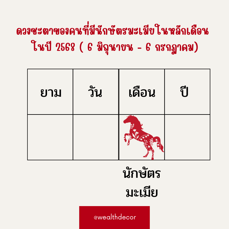 ดวงชะตาของคนที่มีนักษัตรมะเมียในหลักเดือนในปี 2568 (ปีมะเส็ง ธาตุไฟหยาง)