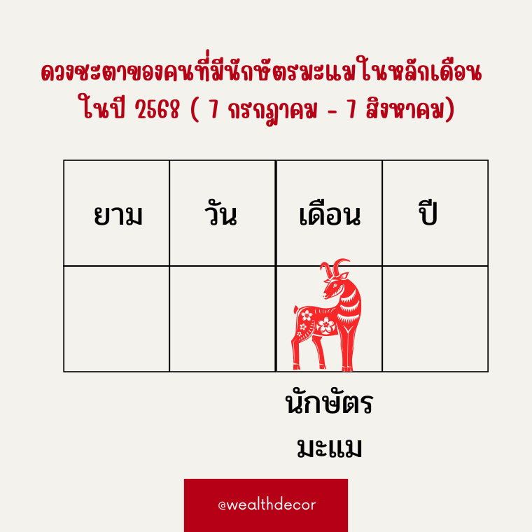 ดวงชะตาของคนที่มีนักษัตรมะแมในหลักเดือนในปี 2568 (ปีมะเส็ง ธาตุไฟหยาง)