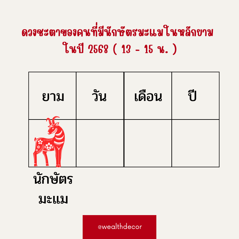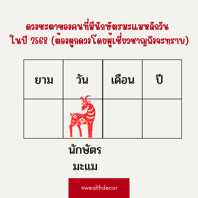 ดวงชะตาของคนที่มีนักษัตรมะแมในหลักวัน ในปี 2568