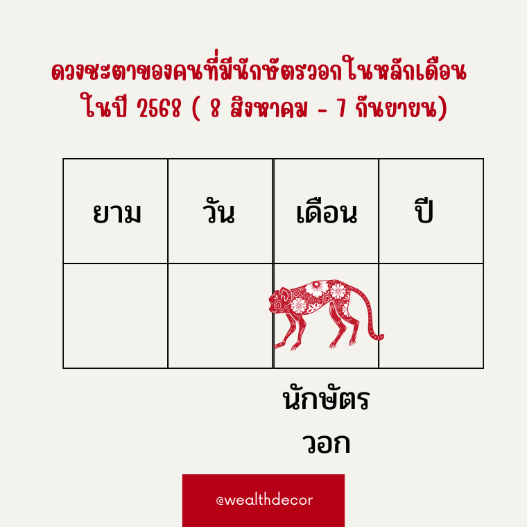 ดวงชะตาของคนที่มีนักษัตรวอกในหลักเดือนในปี 2568 (ปีมะเส็ง ธาตุไฟหยาง)