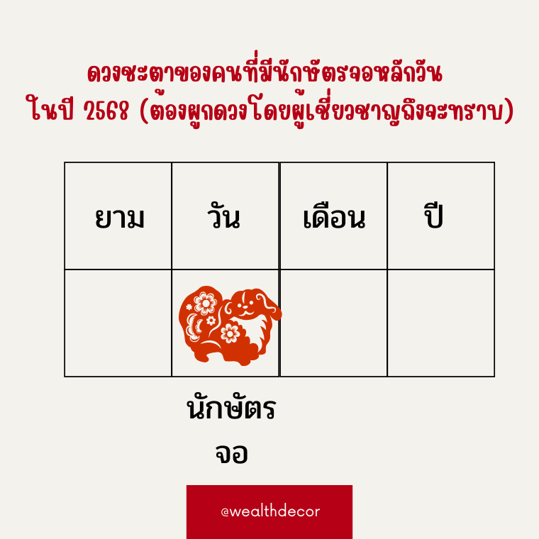 ดวงชะตาของคนที่มีนักษัตรจอในหลักวัน ในปี 2568