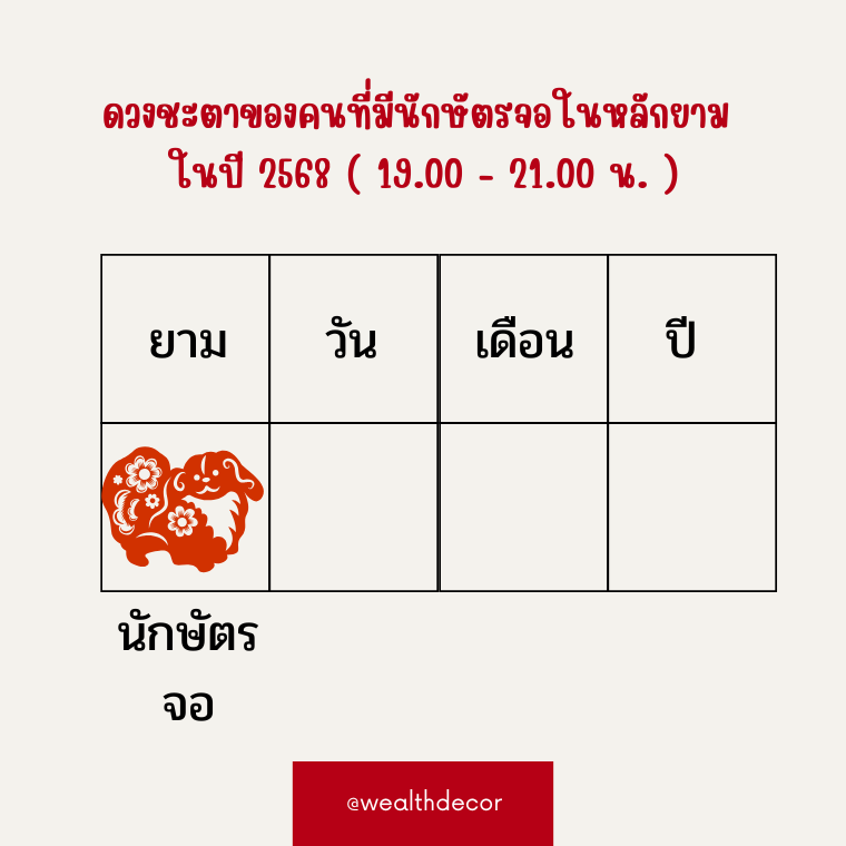 ดวงชะตาของคนที่มีนักษัตรจอในหลักปี ในปี 2568