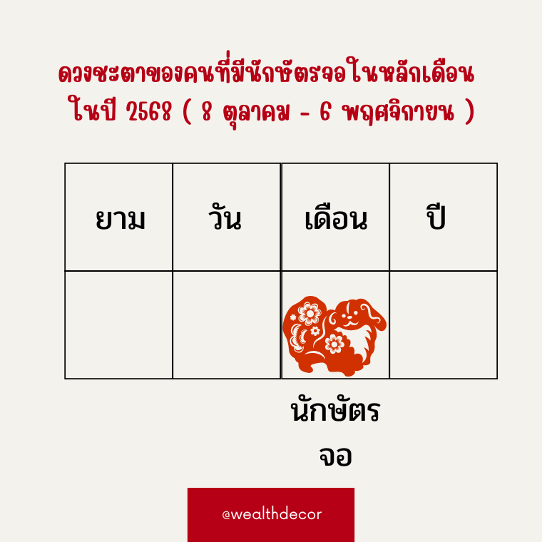 ดวงชะตาของคนที่มีนักษัตรจอในหลักเดือนในปี 2568 (ปีมะเส็ง ธาตุไฟหยาง)