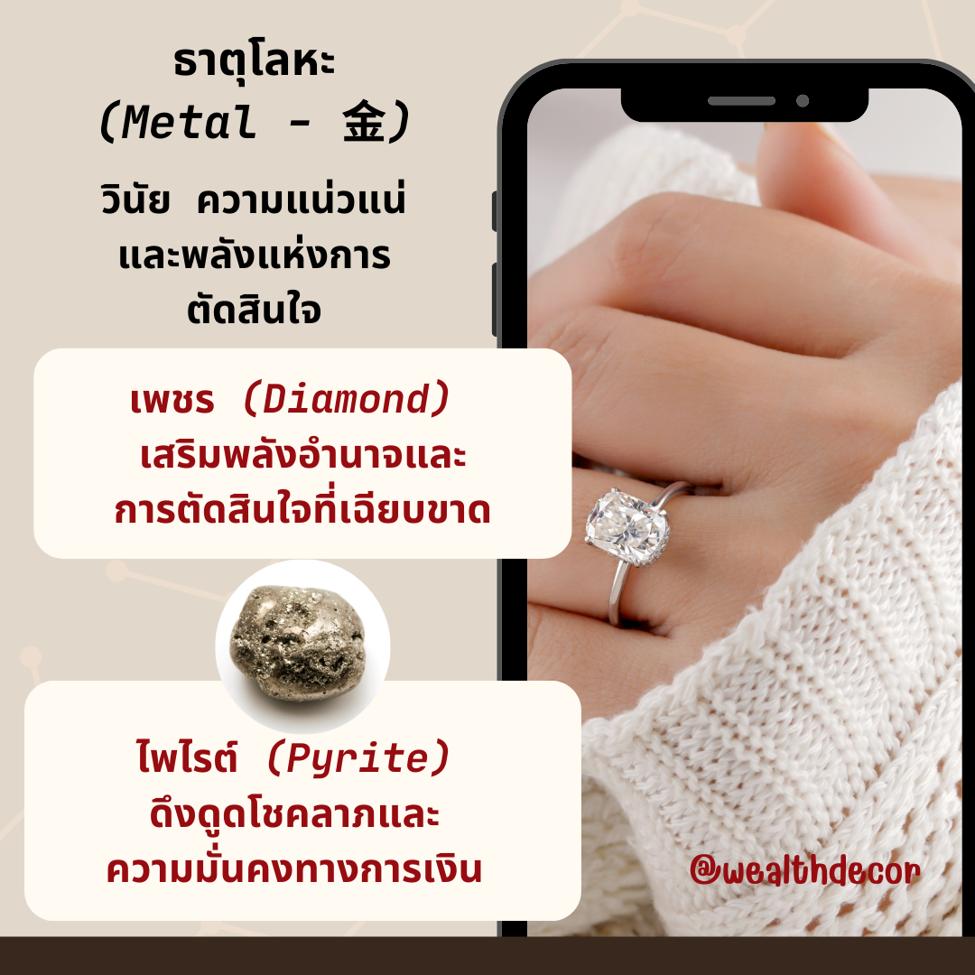 ✔ ธาตุโลหะเกี่ยวข้องกับ วินัย ความแน่วแน่ และพลังแห่งการตัดสินใจ