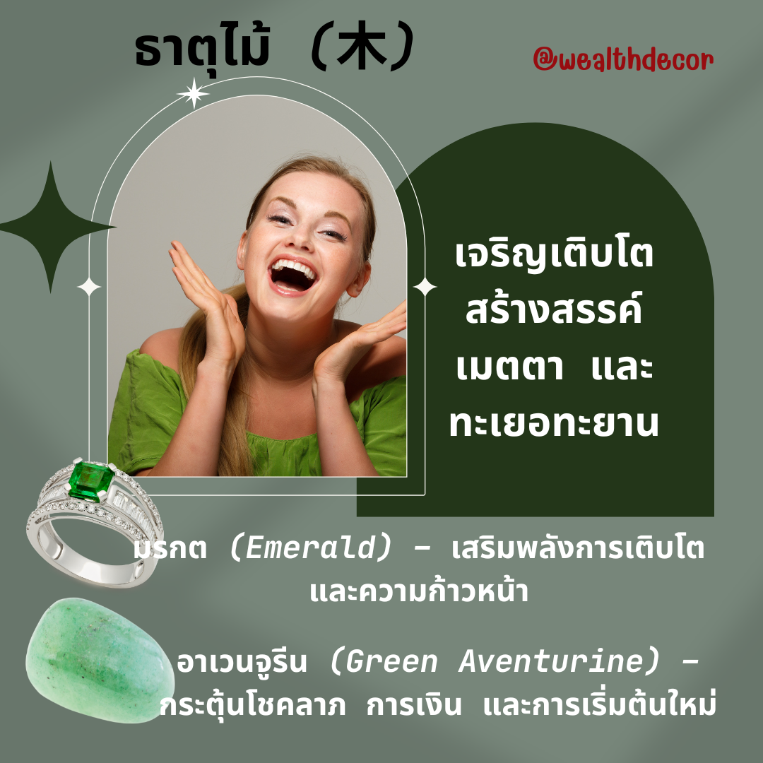 ✔ ธาตุไม้เป็นพลังงานของการเจริญเติบโต การสร้างสรรค์ ความเมตตา และความทะเยอทะยาน
