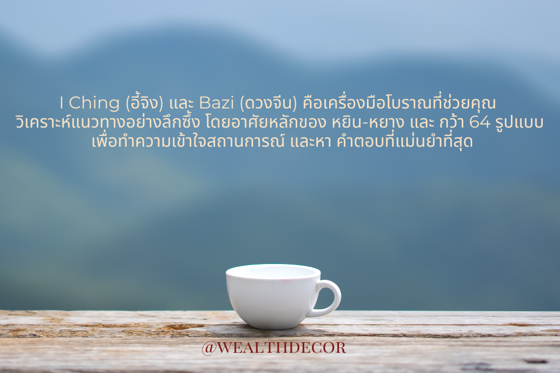 I Ching (อี้จิง) และ Bazi (ดวงจีน) คือเครื่องมือโบราณที่ช่วยคุณ วิเคราะห์แนวทางอย่างลึกซึ้ง โดยอาศัยหลักของ หยิน-หยาง และ กว้า 64 รูปแบบ เพื่อทำความเข้าใจสถานการณ์ และหา คำตอบที่แม่นยำที่สุด